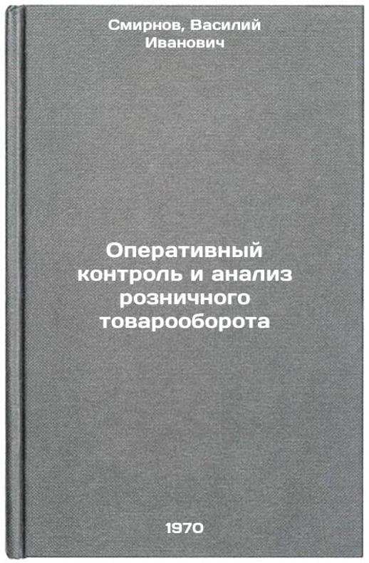 In Russian. Smirnov, Vasily Ivanovich. Operational control and analysis of retail turnover. Moscow: 1970. Operativnyy kontrol' i analiz roznichnogo tovarooborota. In Russian /Operational control and analysis of retail turnover . All images are for identification of editions only. Several books of the same edition may be available. Please feel free to request photos of available books. SKU7448724