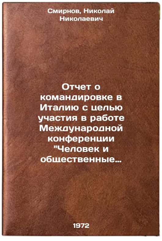 In Russian. Smirnov, Nikolai Nikolaevich. Report on his mission to Italy to participate in the work of the International Conference Man and Public Relations. Moscow: VINITI, 1972. Otchet o komandirovke v Italiyu s tselyu uchastiya v rabote Mezhdunarodnoy konferentsii Chelovek i obshchestvennye otnosheniya. In Russian/Report on a mission to Italy to participate in the work of the International Conference on Man and Social Relations. All images are for identification of editions only. Several books of the same edition may be available. Please feel free to request photos of available books. SKU7449112