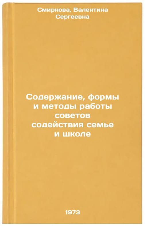 In Russian. Smirnova, Valentina Sergeevna. Content, forms and methods of work of family and school assistance councils. Moscow: 1973. Soderzhanie, formy i metody raboty sovetov sodeystviya seme i shkole. In Russian/Content, Forms and Methods of Work of Family and School Promotion Councils. All images are for identification of editions only. Several books of the same edition may be available. Please feel free to request photos of available books. SKU7449478