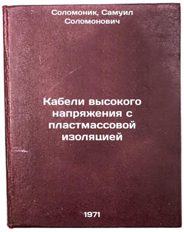 In Russian. Solomonik, Samuil Solomonovich. High voltage cables with plastic insulation. Moscow: 1971. Kabeli vysokogo napryazheniya s plastmassovoy izolyatsiey. In Russian /High voltage cables with plastic insulation . All images are for identification of editions only. Several books of the same edition may be available. Please feel free to request photos of available books. SKU7449824