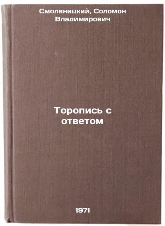 In Russian. Smolyanitsky, Solomon Vladimirovich. Hurry with an answer. Moscow: Soviet Russia, 1971. All images are for identification of editions only. Several books of the same edition may be available. Please feel free to request photos of available books. SKU7452268