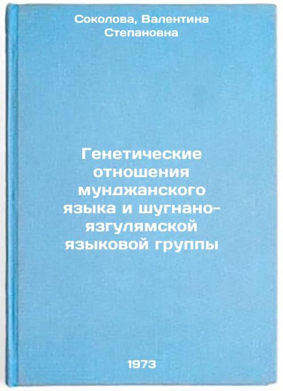 In Russian. Sokolova, Valentina Stepanovna. Genetic relations between Mundzhan language and Shugno-Yazgulamsk language group. Leningrad: Science. Leningrad Division, 1973. Geneticheskie otnosheniya mundzhanskogo yazyka i shugnano-yazgulyamskoy yazykovoy gruppy. In Russian/Genetic relationship of Munjian language and Shugnano-Yazguli language group. All images are for identification of editions only. Several books of the same edition may be available. Please feel free to request photos of available books. SKU7455633
