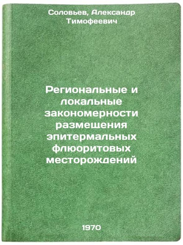 In Russian. Solovyov, Alexander Timofeevich. Regional and local regularities of the location of epithermal fluorite deposits. Leningrad: 1970. Regional'nye i lokal'nye zakonomernosti razmeshcheniya epitermal'nykh flyuoritovykh mestorozhdeniy. In Russian /Regional and local patterns of epithermal fluorite deposits . All images are for identification of editions only. Several books of the same edition may be available. Please feel free to request photos of available books. SKU7456112