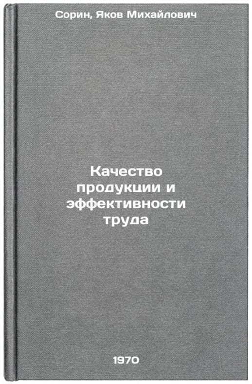 In Russian. Sorin, Yakov Mikhailovich. Quality of Products and Labor Efficiency. Moscow: Profizdat, 1970. Kachestvo produktsii i effektivnosti truda. In Russian /Product Quality and Labor Efficiency . All images are for identification of editions only. Several books of the same edition may be available. Please feel free to request photos of available books. SKU7456530