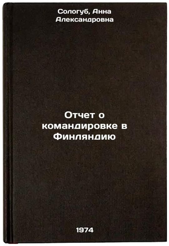 In Russian. Sologub, Anna Alexandrovna. Report on mission to Finland. Moscow: 1974. All images are for identification of editions only. Several books of the same edition may be available. Please feel free to request photos of available books. SKU7456894