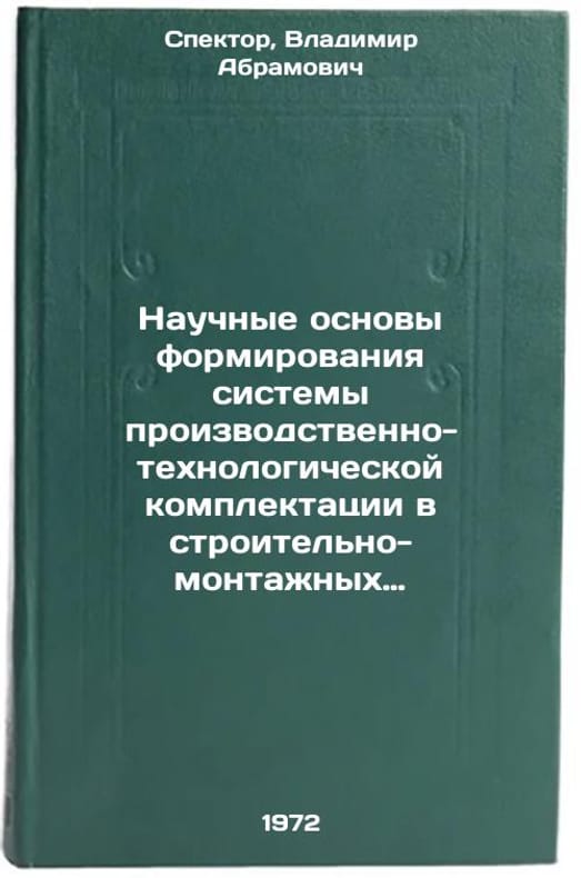 In Russian. Spektor, Vladimir Abramovich. Scientific Basics of Forming a System of Production and Technological Completion in Construction and Installation Trusts. Moscow: 1972. Nauchnye osnovy formirovaniya sistemy proizvodstvenno-tekhnologicheskoy komplektatsii v stroitelno-montazhnykh trestakh. In Russian/Scientific Basics of Forming a Production and Technological Completion System in Construction and Installation Trusts. All images are for identification of editions only. Several books of the same edition may be available. Please feel free to request photos of available books. SKU7459272