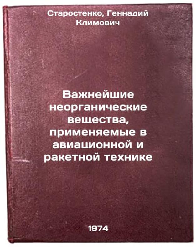 In Russian. Starostenko, Gennady Klimovich. The most important inorganic substances used in aviation and rocket engineering. Moscow: 1974. Vazhneyshie neorganicheskie veshchestva, primenyaemye v aviatsionnoy i raketnoy tekhnike. In Russian /Critical Inorganic Substances Used in Aircraft and Missile Engineering. All images are for identification of editions only. Several books of the same edition may be available. Please feel free to request photos of available books. SKU7460498