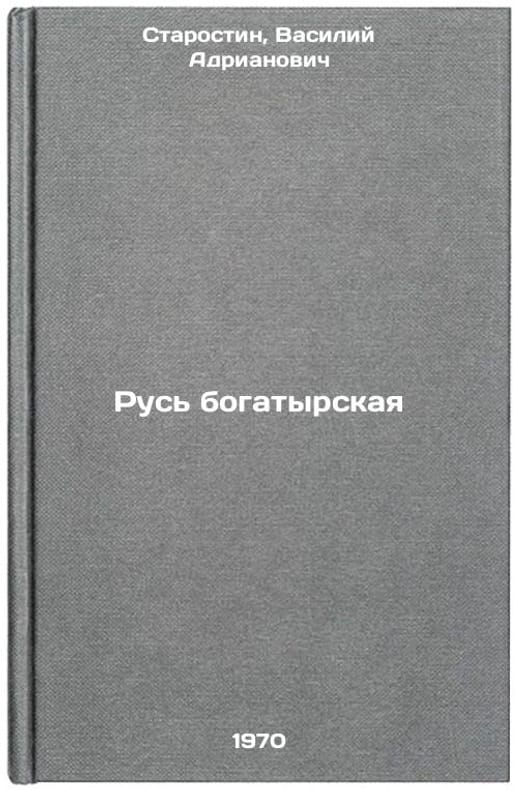 In Russian. Starostin, Vasily Adrianovich. Russia Bogatyrskaya. Yaroslavl: Verkhny-Volzhskaya Book Publishing House, 1970. All images are for identification of editions only. Several books of the same edition may be available. Please feel free to request photos of available books. SKU7460529
