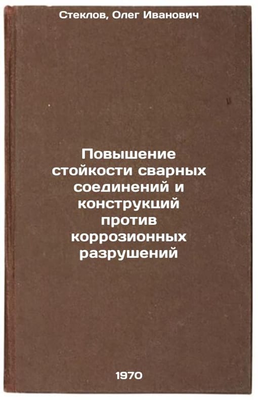 In Russian. Steklov, Oleg Ivanovich. Increasing the resistance of welds and structures against corrosion destruction. Moscow: 1970. Povyshenie stoykosti svarnykh soedineniy i konstruktsiy protiv korrozionnykh razrusheniy. In Russian /Strengthening the resistance of welds and structures against corrosion breakage . All images are for identification of editions only. Several books of the same edition may be available. Please feel free to request photos of available books. SKU7460769
