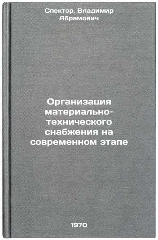 In Russian. Spector, Vladimir Abramovich. Organization of material and technical supply at the present stage. Moscow: 1970. Organizatsiya material'no-tekhnicheskogo snabzheniya na sovremennom etape. In Russian /Modern logistics management . All images are for identification of editions only. Several books of the same edition may be available. Please feel free to request photos of available books. SKU7460864
