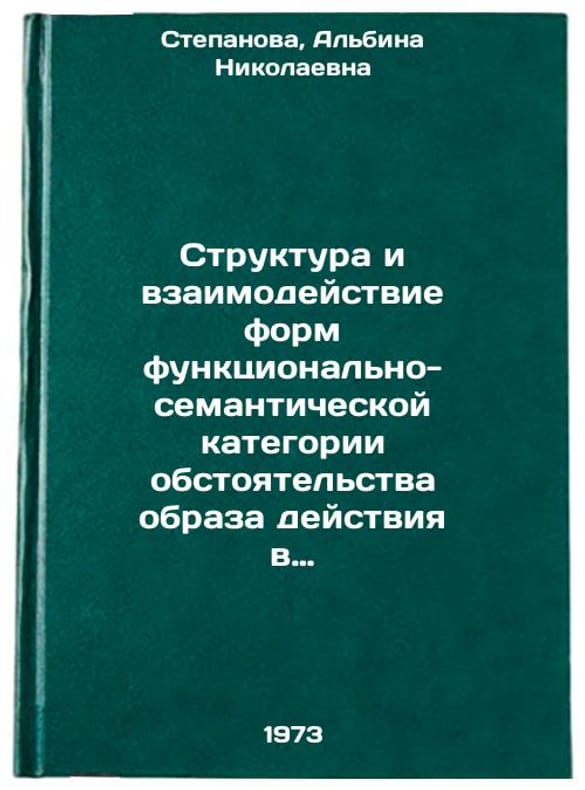 In Russian. Stepanova, Albina Nikolaevna. Structure and interaction of forms of the functional-semantic category of the circumstance of the mode of action in the modern French language. Minsk: 1973. Struktura i vzaimodeystvie form funktsionalno-semanticheskoy kategorii obstoyatelstva obraza deystviya v sovremennom frantsuzskom yazyke. In Russian/Structure and Interaction of Forms of the Functional-Semantic Category of Mode of Action Circumstance in Contemporary French. All images are for identification of editions only. Several books of the same edition may be available. Please feel free to request photos of available books. SKU7463320
