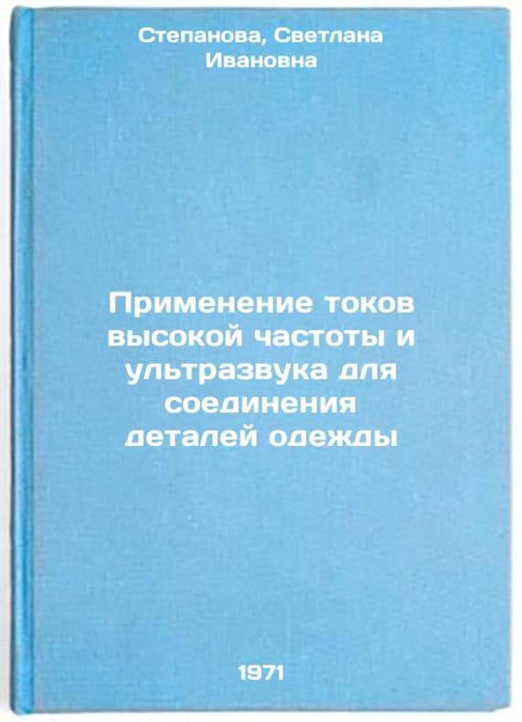 In Russian. Stepanova, Svetlana Ivanovna. The Application of High Frequency Currents and Ultrasound to Connect Clothing Parts. Moscow: 1971. Primenenie tokov vysokoy chastoty i ul'trazvuka dlya soedineniya detaley odezhdy. In Russian /The use of high frequency currents and ultrasound to connect apparel parts . All images are for identification of editions only. Several books of the same edition may be available. Please feel free to request photos of available books. SKU7463372