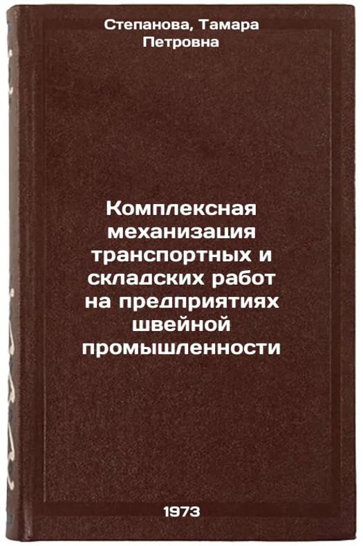 In Russian. Stepanova, Tamara Petrovna. Complex mechanization of transport and storage works at garment enterprises. Leningrad: 1973. Kompleksnaya mekhanizatsiya transportnykh i skladskikh rabot na predpriyatiyakh shveynoy promyshlennosti. In Russian/Integrated mechanization of transport and warehousing in the garment industry. All images are for identification of editions only. Several books of the same edition may be available. Please feel free to request photos of available books. SKU7463382