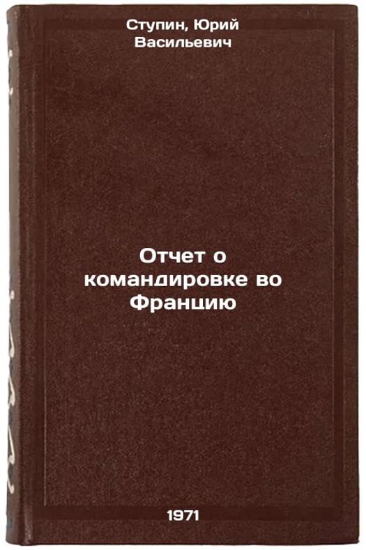 In Russian. Stupin, Yuri Vasilievich. Report on mission to France. Moscow: VINITI, 1971. All images are for identification of editions only. Several books of the same edition may be available. Please feel free to request photos of available books. SKU7463752