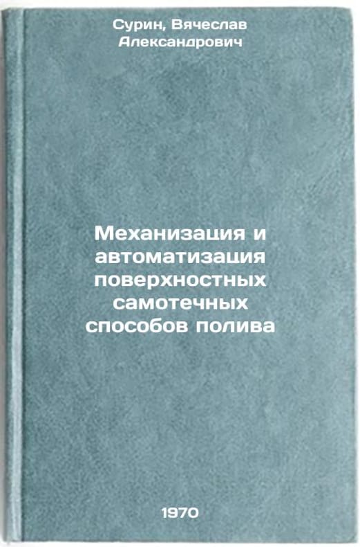 In Russian. Surin, Vyacheslav Alexandrovich. Mechanization and automation of surface irrigation methods. Moscow: Rosselkhozhizdat, 1970. Mekhanizatsiya i avtomatizatsiya poverkhnostnykh samotechnykh sposobov poliva. In Russian /Mechanization and automation of surface irrigation . All images are for identification of editions only. Several books of the same edition may be available. Please feel free to request photos of available books. SKU7464083