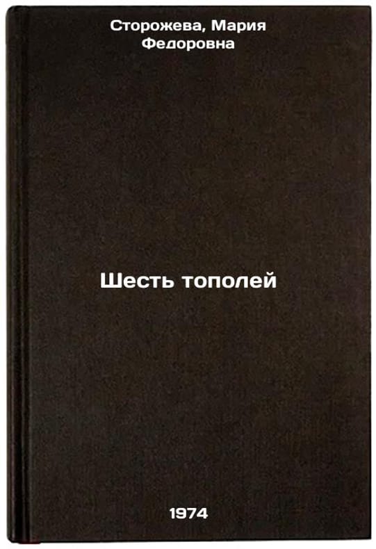 In Russian. Storozheva, Maria Fedorovna. Six poplars. Moscow: Soviet writer, 1974. All images are for identification of editions only. Several books of the same edition may be available. Please feel free to request photos of available books. SKU7465071