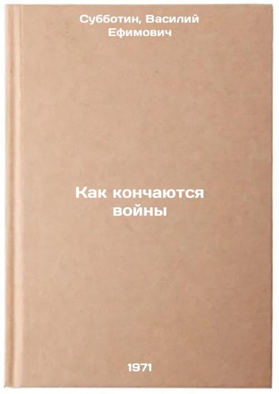 Short description: In Russian. Subbotin, Vasily Efimovich. How wars end. Moscow: Soviet writer, 1975. The image is provided for reference only. It may reflect condition of one of the available copies or only help in identifying the edition. Please feel free to contact us for a detailed description of the copies available. SKU7004024