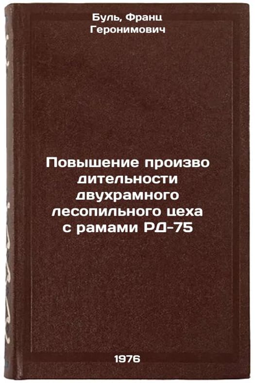 In Russian. Buhl, Franz Geronimovich. Increasing the productivity of a two-frame sawmill with RD-75 frames. Riga: 1976. Povyshenie proizvoditel'nosti dvukhramnogo lesopil'nogo tsekha s ramami RD-75. In Russian /Increasing the productivity of the two-frame sawmill with RD-75 frames . All images are for identification of editions only. Several books of the same edition may be available. Please feel free to request photos of available books. SKU7469026
