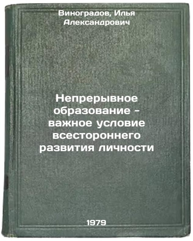 In Russian. Vinogradov, Ilya Aleksandrovich. Continuing education is an important condition for the all-round development of the personality Nepreryvnoe obrazovanie - vazhnoe uslovie vsestoronnego razvitiya lichnosti/Continuing education is essential for the full development of the individual In Russian. All images are for identification of editions only. Several books of the same edition may be available. Please feel free to request photos of available books. SKU7470398