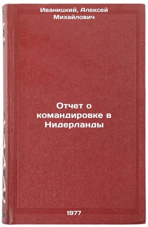 In Russian. Ivanitsky, Alexey Mikhailovich. Report on mission to the Netherlands. Moscow: 1977. Otchet o komandirovke v Niderlandy. In Russian /Report on mission to the Netherlands . All images are for identification of editions only. Several books of the same edition may be available. Please feel free to request photos of available books. SKU7470873