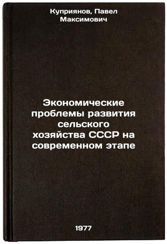 In Russian. Kupriyanov, Pavel Maksimovich. Economic Problems of the Development of Agriculture in the USSR at the Modern Stage. Moscow: 1977. Ekonomicheskie problemy razvitiya sel'skogo khozyaystva SSSR na sovremennom etape. In Russian /Economic Problems of Agricultural Development in the USSR at the Modern Stage . All images are for identification of editions only. Several books of the same edition may be available. Please feel free to request photos of available books. SKU7472177