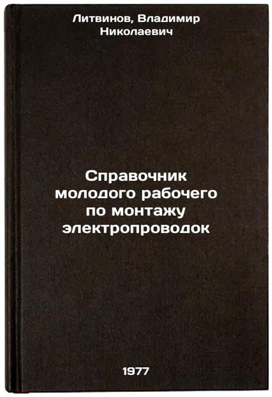 In Russian. Litvinov, Vladimir Nikolaevich. A Young Worker's Guide to Wiring Installation. Moscow: Higher School, 1977. Spravochnik molodogo rabochego po montazhu elektroprovodok. In Russian /A young worker's guide to wiring installation . All images are for identification of editions only. Several books of the same edition may be available. Please feel free to request photos of available books. SKU7473180