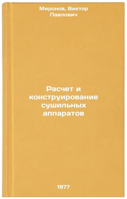 In Russian. Mironov, Viktor Pavlovich. Calculation and design of drying apparatus. Ivanovo: IKhTI, 1977. Raschet i konstruirovanie sushil'nykh apparatov. In Russian /Calculation and design of dryers . All images are for identification of editions only. Several books of the same edition may be available. Please feel free to request photos of available books. SKU7473313