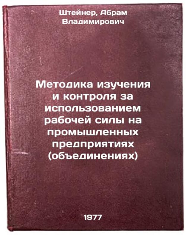 In Russian. Steiner, Abram Vladimirovich. Methodology of study and control of labor use in industrial enterprises (associations). Moscow: 1977. Metodika izucheniya i kontrolya za ispol'zovaniem rabochey sily na promyshlennykh predpriyatiyakh (obedineniyakh). In Russian /Methodology for studying and monitoring the use of manpower in industrial enterprises (associations) . All images are for identification of editions only. Several books of the same edition may be available. Please feel free to request photos of available books. SKU7475839