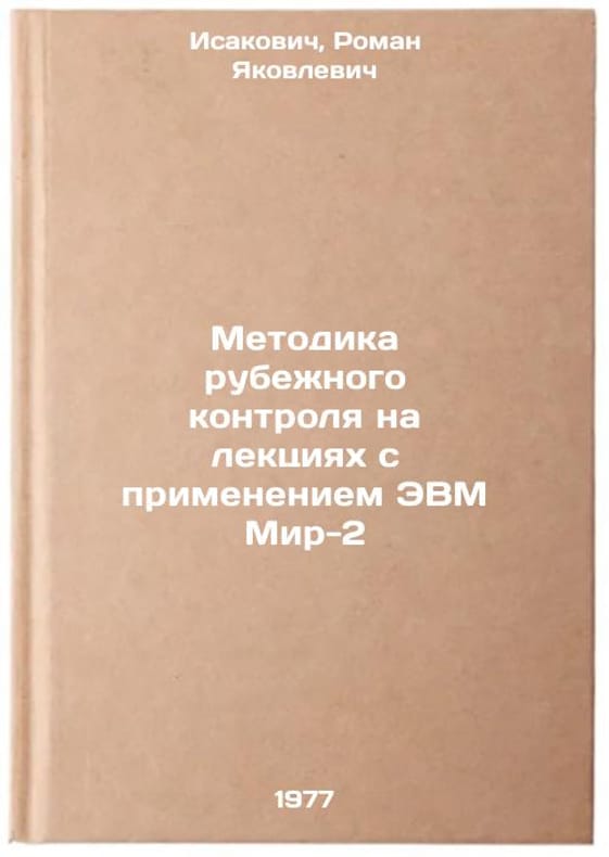 In Russian. Isakovich, Roman Yakovlevich. Methodology of frontier control at lectures using the Mir-2 computer. Moscow: 1977. Metodika rubezhnogo kontrolya na lektsiyakh s primeneniem EVM Mir-2. In Russian /Methodology of frontier control at lectures using the Mir-2 computer . All images are for identification of editions only. Several books of the same edition may be available. Please feel free to request photos of available books. SKU7476292
