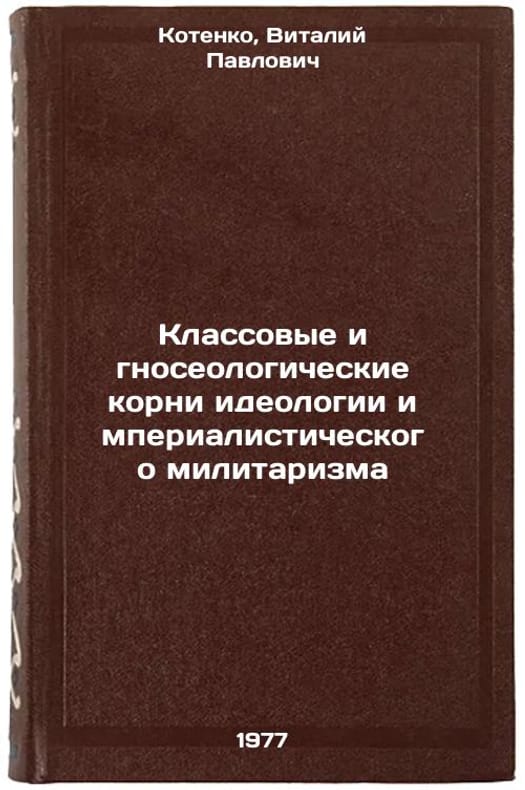 In Russian. Kotenko, Vitaly Pavlovich. Class and epistemological roots of the ideology of imperialist militarism. Leningrad: 1977. Klassovye i gnoseologicheskie korni ideologii imperialisticheskogo militarizma. In Russian /Class and epistemological roots of the ideology of imperialist militarism . All images are for identification of editions only. Several books of the same edition may be available. Please feel free to request photos of available books. SKU7476905