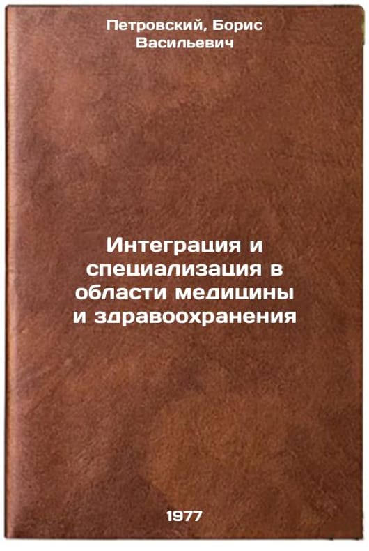 In Russian. Petrovsky, Boris Vasilievich. Integration and specialization in medicine and health care. Moscow: 1977. Integratsiya i spetsializatsiya v oblasti meditsiny i zdravookhraneniya. In Russian /Integration and specialization in medicine and health care . All images are for identification of editions only. Several books of the same edition may be available. Please feel free to request photos of available books. SKU7477356