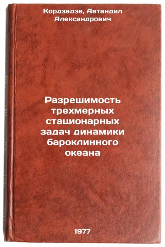 In Russian. Kordzadze, Avtandil Alexandrovich. Resolution of three-dimensional stationary problems of the dynamics of the Baroklin Ocean. Novosibirsk: 1977. Razreshimost' trekhmernykh statsionarnykh zadach dinamiki baroklinnogo okeana. In Russian /Resolution of the three-dimensional stationary problems of the dynamics of the Baroklin Ocean . All images are for identification of editions only. Several books of the same edition may be available. Please feel free to request photos of available books. SKU7477833
