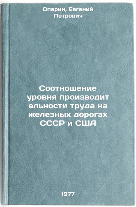 In Russian. Oparin, Evgeniy Petrovich. Ratio of labor productivity on the railways of the USSR and the USA. Moscow: 1977. Sootnoshenie urovnya proizvoditel'nosti truda na zheleznykh dorogakh SSSR i SShA. In Russian /Ratio of labor productivity on USSR and US railways . All images are for identification of editions only. Several books of the same edition may be available. Please feel free to request photos of available books. SKU7478362