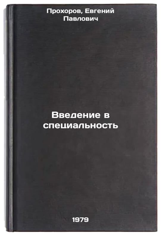 In Russian. Prokhorov, Evgeny Pavlovich. Introduction to the specialty. Moscow: Moscow State University, 1979 All images are for identification of editions only. Several books of the same edition may be available. Please feel free to request photos of available books. SKU7478640