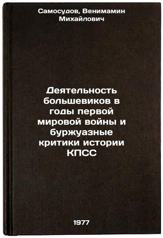 In Russian. Samosudov, Venimamin Mikhailovich. Activities of the Bolsheviks during World War I and bourgeois critics of the history of the CPSU. Omsk: 1977. Deyatel'nost' bol'shevikov v gody pervoy mirovoy voyny i burzhuaznye kritiki istorii KPSS. In Russian /The activities of the Bolsheviks during World War I and bourgeois critics of the history of the CPSU . All images are for identification of editions only. Several books of the same edition may be available. Please feel free to request photos of available books. SKU7478991
