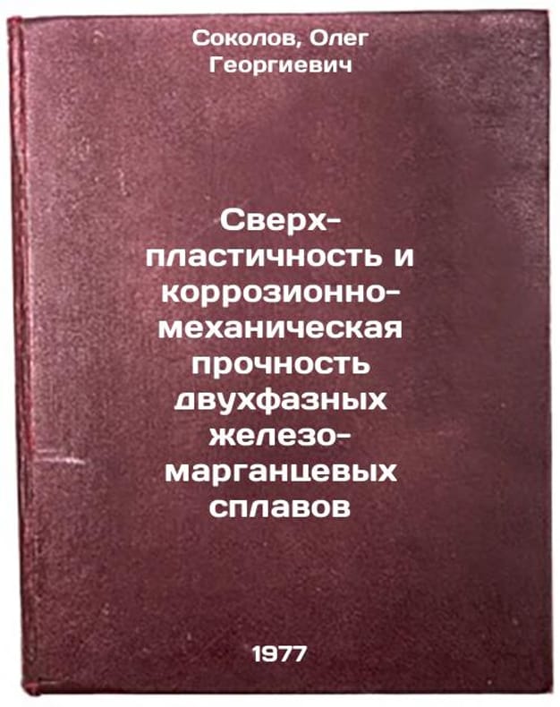 In Russian. Sokolov, Oleg Georgievich. Superplasticity and corrosion-mechanical strength of two-phase ferro-manganese alloys. Kiev: Naukova dumka, 1977. Sverkh-plastichnost' i korrozionno-mekhanicheskaya prochnost' dvukhfaznykh zhelezo-margantsevykh splavov. In Russian /Superplasticity and corrosion-mechanical strength of two-phase ferro-manganese alloys . All images are for identification of editions only. Several books of the same edition may be available. Please feel free to request photos of available books. SKU7479223