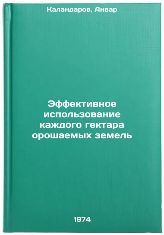 "Short description: In Russian. Kalandarov, Anvar. Efficient use of every hectare of irrigated land. Dushanbe: b / w, 1974. Effektivnoe ispol'zovanie kazhdogo gektara oroshaemykh zemel'. In Russian /Efficient use of every hectare of irrigated land. All images are for identification of editions only. Several books of the same edition may be available. Please feel free to request photos of available books. SKU7480653"