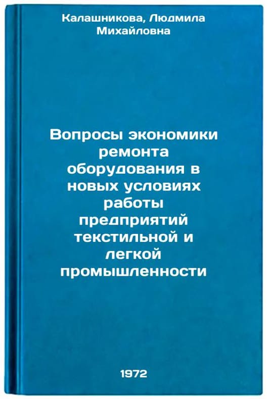 In Russian. Kalashnikova, Lyudmila Mikhailovna. Issues of Economics of Equipment Repair in New Working Conditions of Textile and Light Industry Enterprises. Moscow: Light Industry, 1972. Voprosy ekonomiki remonta oborudovaniya v novykh usloviyakh raboty predpriyatiy tekstilnoy i legkoy promyshlennosti. In Russian/The economics of equipment repair in the new working environment of textile and light industry. All images are for identification of editions only. Several books of the same edition may be available. Please feel free to request photos of available books. SKU7482198