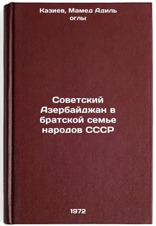 In Russian. Kaziyev, Mamed Adil oglu. Soviet Azerbaijan in a fraternal family of the peoples of the USSR. Baku: Elm, 1972. Sovetskiy Azerbaydzhan v bratskoy seme narodov SSSR. In Russian/Soviet Azerbaijan in a fraternal family of the peoples of the USSR. All images are for identification of editions only. Several books of the same edition may be available. Please feel free to request photos of available books. SKU7482355