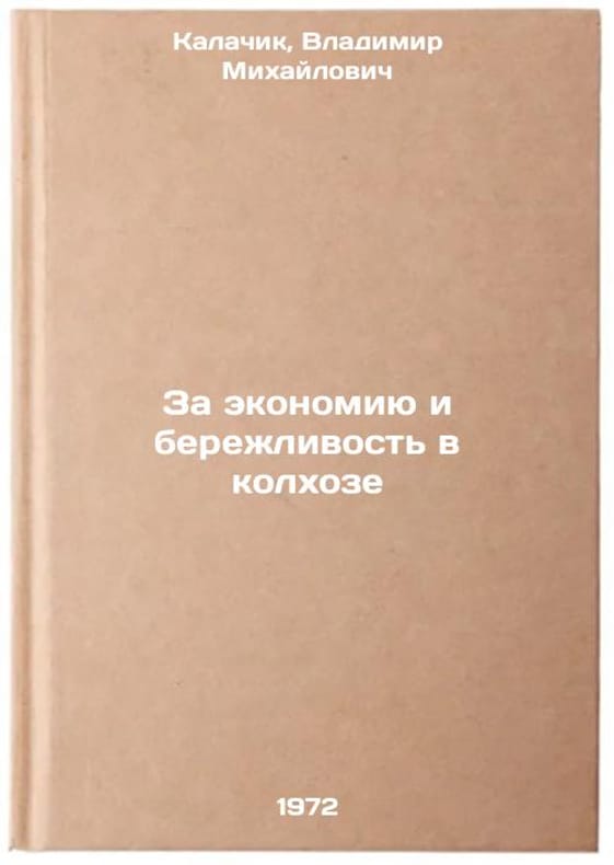 In Russian. Kalachik, Vladimir Mikhailovich. For economy and thrift in the collective farm. Moscow: Economy, 1972. Za ekonomiyu i berezhlivost v kolkhoze. In Russian/For Economy and Thriftiness in the Collective Farm. All images are for identification of editions only. Several books of the same edition may be available. Please feel free to request photos of available books. SKU7482586