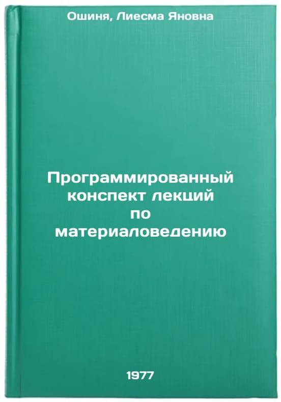 In Russian. Oshinya, Liesma Yanovna. Programme summary of lectures on materials science. Riga: Riga Polytechnic Institute, 1977-. Programmirovannyy konspekt lektsiy po materialovedeniyu. In Russian /Programme summary of lectures on materials science . All images are for identification of editions only. Several books of the same edition may be available. Please feel free to request photos of available books. SKU7583010