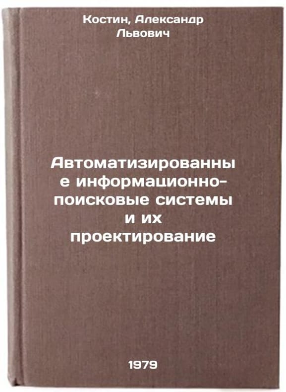 In Russian. Kostin, Alexander Lvovich. Automated information and search systems and their design. Moscow: Informneftegazstroy, 1979 Avtomatizirovannye informatsionno-poiskovye sistemy i ikh proektirovanie/Automated search engines and their design In Russian. All images are for identification of editions only. Several books of the same edition may be available. Please feel free to request photos of available books. SKU7585385