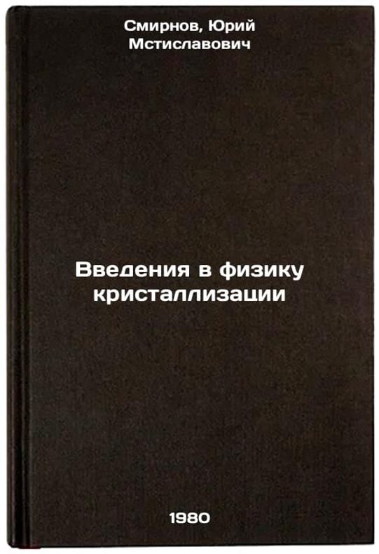 In Russian. Smirnov, Yuri Mstislavovich. Introduction to Crystallization Physics. Kalinin: KSU, 1979-1980. Vvedeniya v fiziku kristallizatsii. In Russian /Entry into Crystallization Physics . All images are for identification of editions only. Several books of the same edition may be available. Please feel free to request photos of available books. SKU7585651