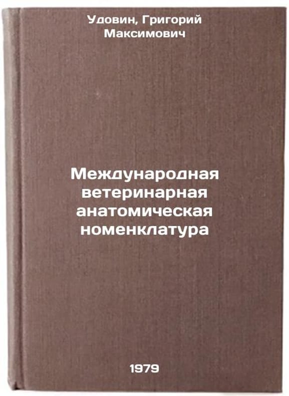In Russian. Udovin, Grigory Maksimovich. International veterinary anatomical nomenclature. Moscow: MBA, 1979 Mezhdunarodnaya veterinarnaya anatomicheskaya nomenklatura/International veterinary anatomical nomenclature In Russian. All images are for identification of editions only. Several books of the same edition may be available. Please feel free to request photos of available books. SKU7585871