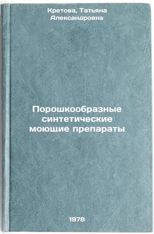 In Russian. Kretova, Tatiana Alexandrovna. Powdery synthetic detergents. Moscow: VNIIKI, 1978 Poroshkoobraznye sinteticheskie moyushchie preparaty/Powdery synthetic detergents In Russian. All images are for identification of editions only. Several books of the same edition may be available. Please feel free to request photos of available books. SKU7587186