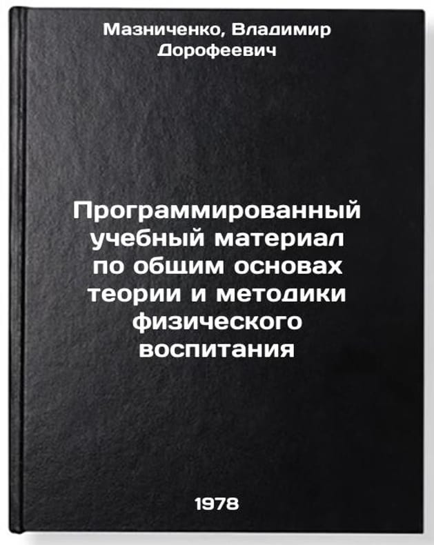 In Russian. Maznichenko, Vladimir Dorofeevich. Programmed teaching material on the general principles of the theory and methodology of physical education. Malakhovka settlement (Moscow Region): 1978 Programmirovannyy uchebnyy material po obshchim osnovakh teorii i metodiki fizicheskogo vospitaniya/Programmed teaching material on the general fundamentals of the theory and methodology of physical education In Russian. All images are for identification of editions only. Several books of the same edition may be available. Please feel free to request photos of available books. SKU7587551