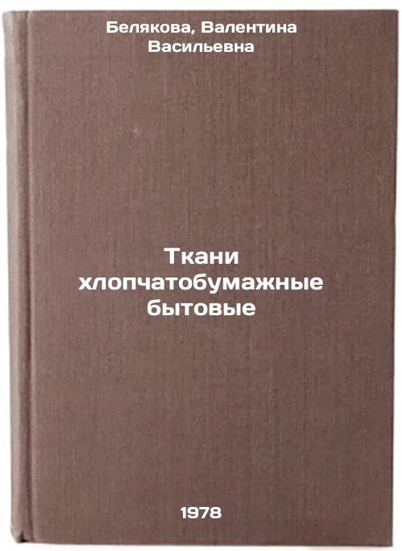 In Russian. Belyakova, Valentina Vasilyevna. Household cotton fabrics. Moscow: VNIIKI, 1978 All images are for identification of editions only. Several books of the same edition may be available. Please feel free to request photos of available books. SKU7587633