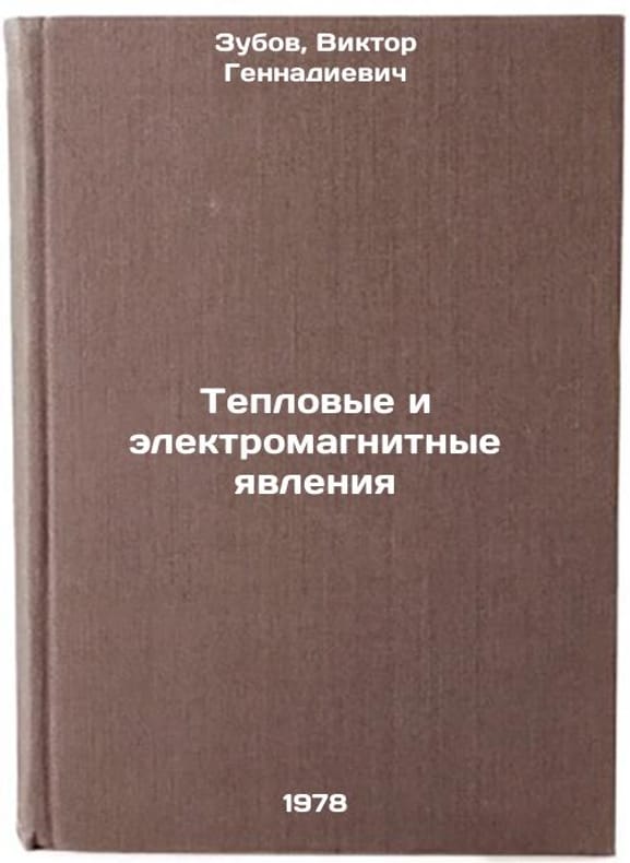 In Russian. Zubov, Viktor Gennadievich. Thermal and Electromagnetic Phenomena. Moscow: 1978 Teplovye i elektromagnitnye yavleniya/Thermal and electromagnetic phenomena In Russian. All images are for identification of editions only. Several books of the same edition may be available. Please feel free to request photos of available books. SKU7588885