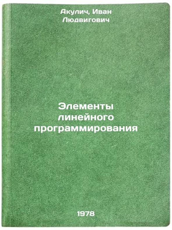 In Russian. Akulich, Ivan Ludvigovich. Elements of linear programming. Riga: Zwaigzne, 1978 All images are for identification of editions only. Several books of the same edition may be available. Please feel free to request photos of available books. SKU7619191