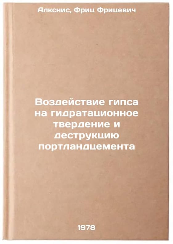 In Russian. Alksnis, Fritz Fritzevich. Effect of gypsum on hydration hardening and destruction of Portland cement. Riga: LatNINTI, 1978 Vozdeystvie gipsa na gidratatsionnoe tverdenie i destruktsiyu portlandtsementa/Effect of gypsum on hydration solidification and destruction of Portland cement In Russian. All images are for identification of editions only. Several books of the same edition may be available. Please feel free to request photos of available books. SKU7619491